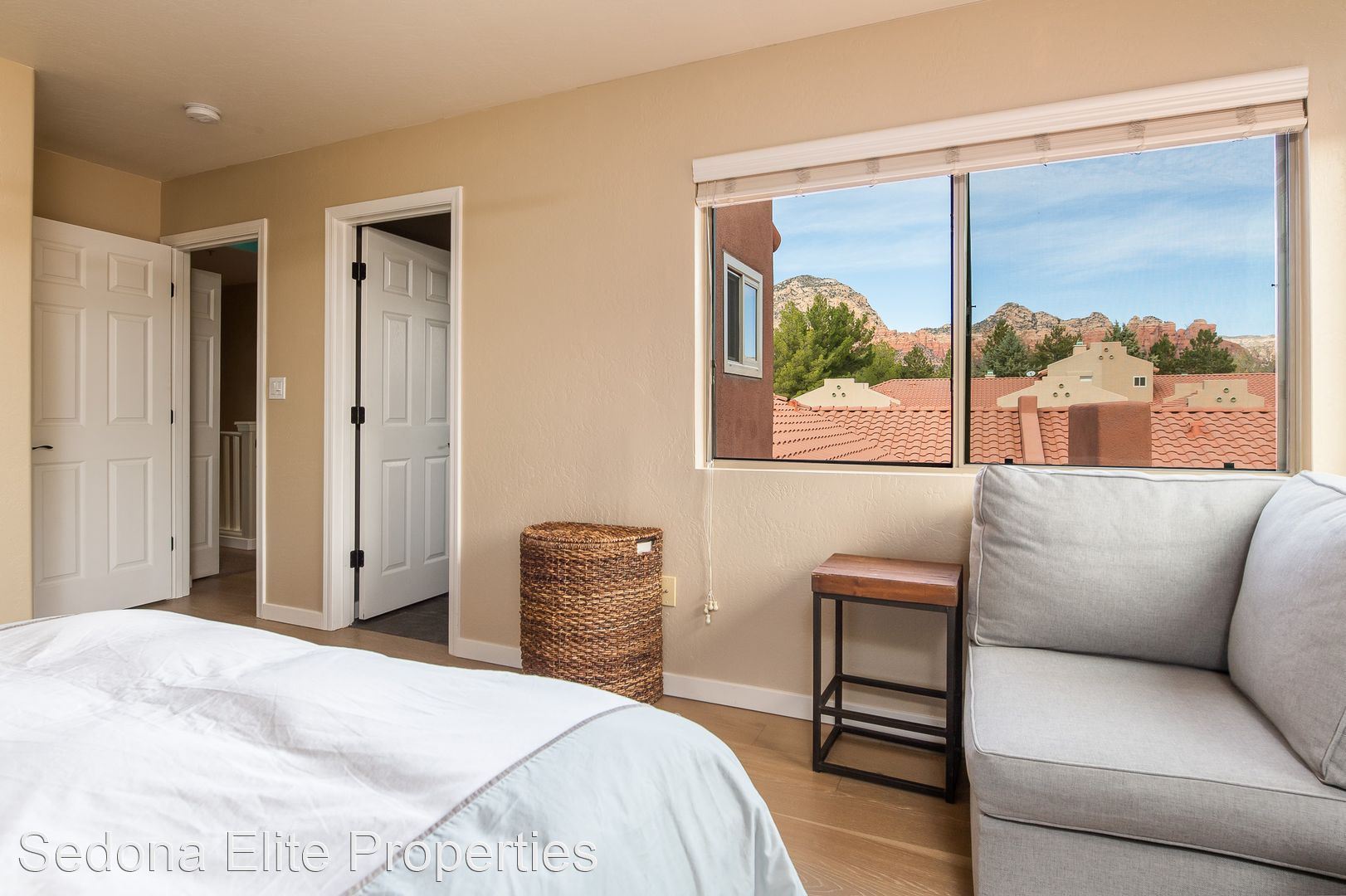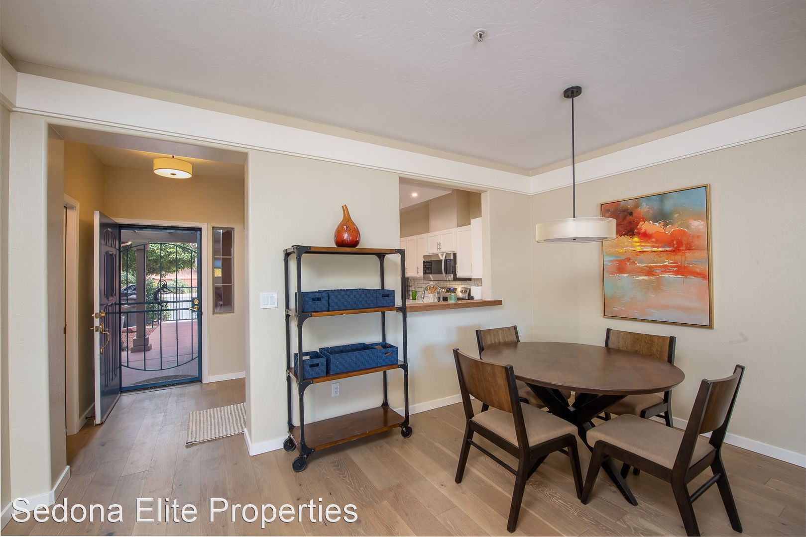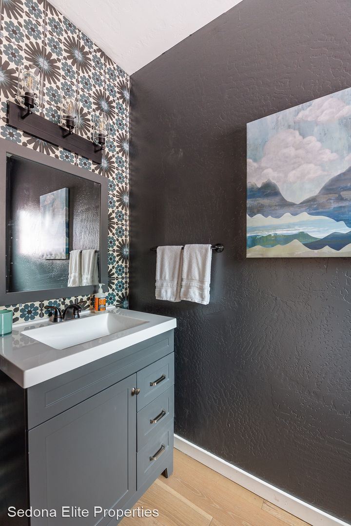 Furnished, Nepenthe, 1 Month Minimum - This coveted two story, two bedroom Nepenthe unit is located in the heart of West Sedona. Completely redone in 2020, this property boasts a completely refinished kitchen with stainless steel appliances, quartz countertops, and beautifully refinished cabinetry. Complete with a private gated entryway, enter the covered entryway into the refinished great room with a gas fireplace, dining area, and passthrough to the kitchen perfect for entertaining. Guests have access to a thoughtfully redone half bath on the first floor.