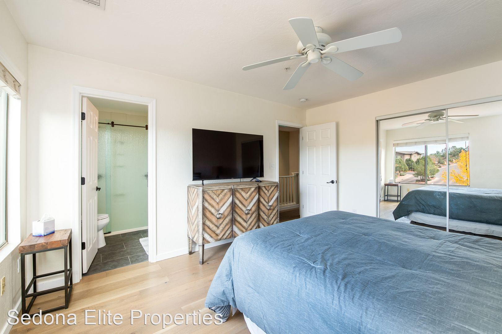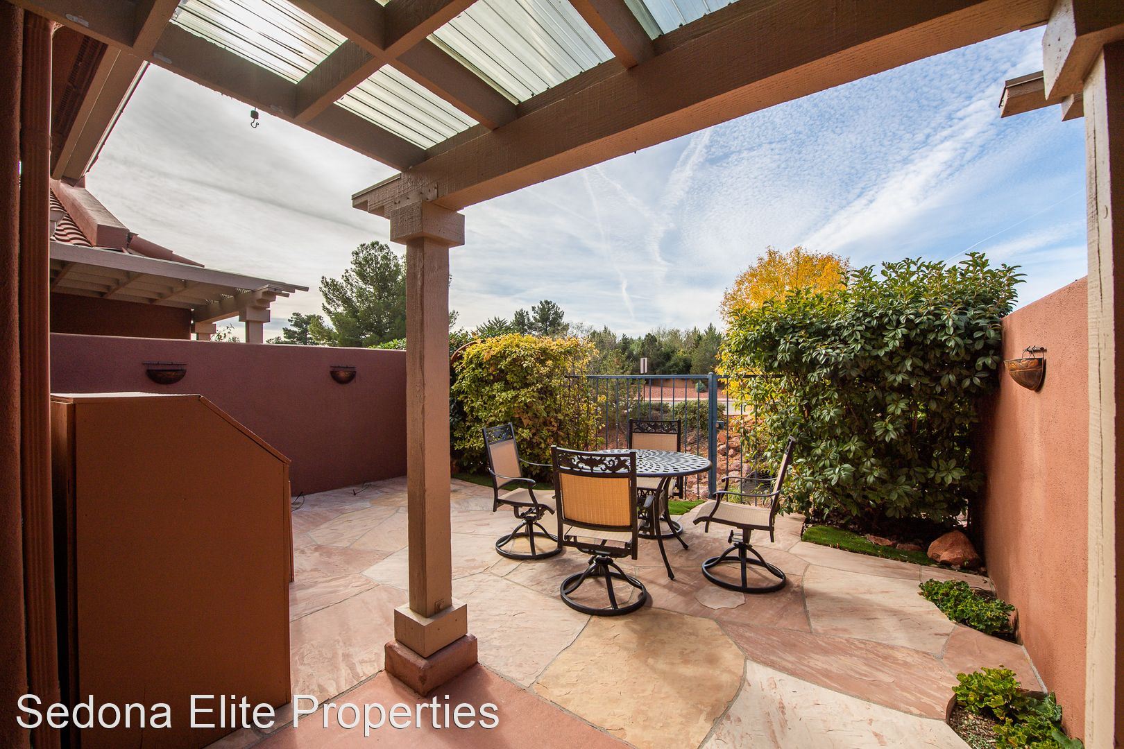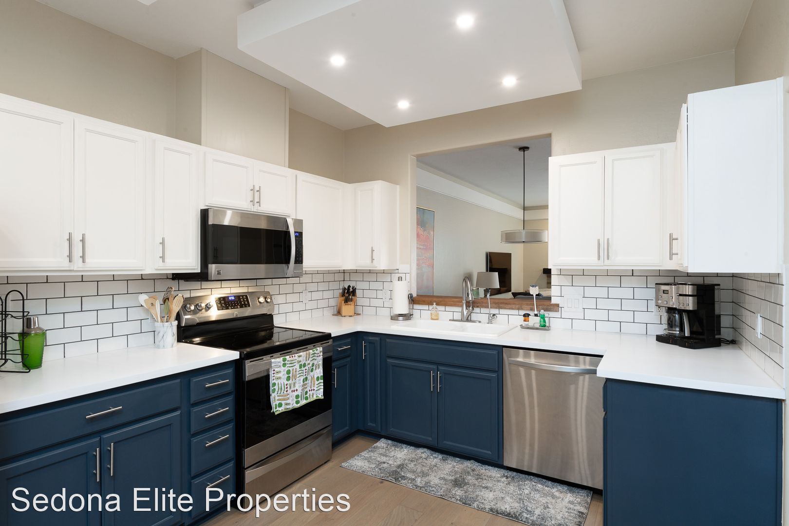 Furnished, Nepenthe, 1 Month Minimum - This coveted two story, two bedroom Nepenthe unit is located in the heart of West Sedona. Completely redone in 2020, this property boasts a completely refinished kitchen with stainless steel appliances, quartz countertops, and beautifully refinished cabinetry. Complete with a private gated entryway, enter the covered entryway into the refinished great room with a gas fireplace, dining area, and passthrough to the kitchen perfect for entertaining. Guests have access to a thoughtfully redone half bath on the first floor.